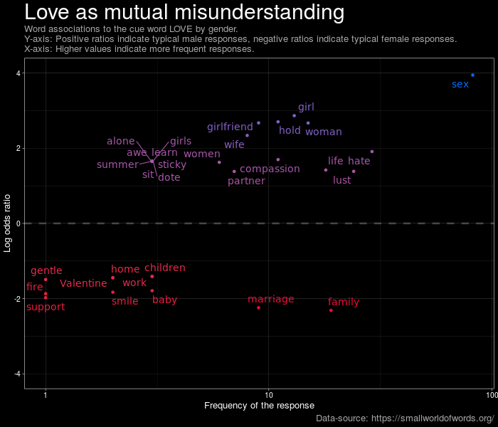 Associations reveal differences not only between age groups but also highlight gender-based variation in perception of the seemingly universal fundamental concepts, such as ‘love’.